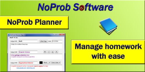 The NoProb Planner is a homework organizer for all students. In an instant, you can record what you have to do for the night or check what needs to be done! The NoProb Planner's intuitive interface gives you the ability to organize your homework in your own creative way! Because it's a standalone application, there is no installation required! Best of all, the NoProb Planner is no problem to use to the fullest! MORE ITEMSBuy "NoProb Planner [Download]" On Sale.